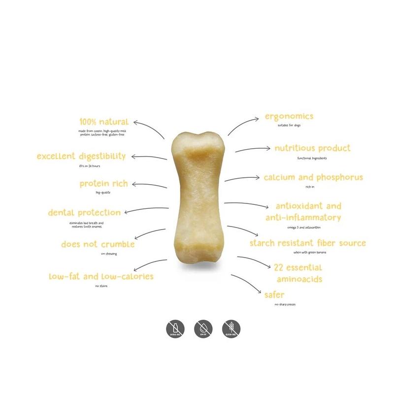 PLUTOS er en langtidsholdbar, 100 % naturligt tyggeben, der fås i en række lækre smagsvarianter. Den hjælper med at rense hundens tænder. Den er overvejende lavet af et enkelt protein og kasein produkt, et osteprotein, der er fyldt med smag. Leveres med lammesmag.